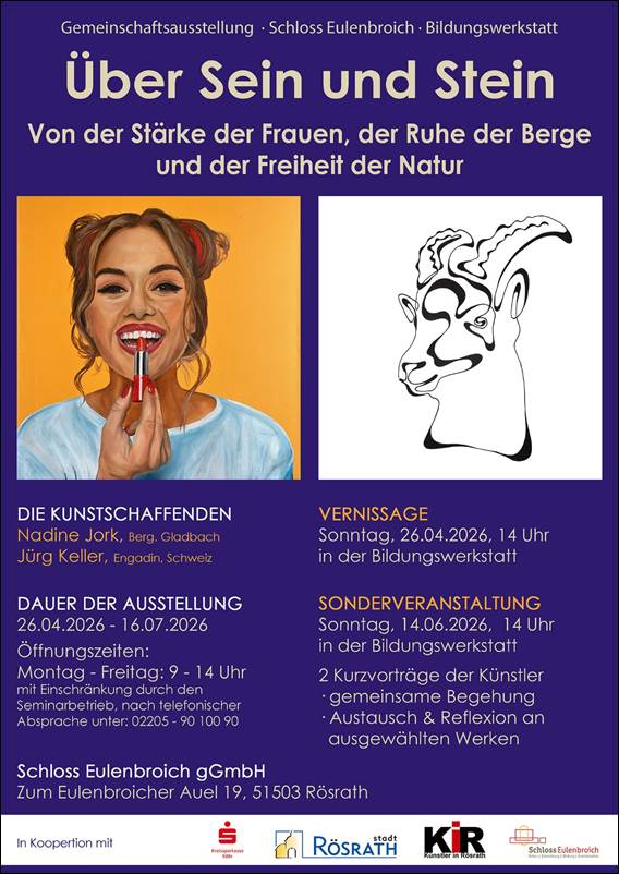 Die Kunstschaffenden verbinden in ihren Werken die Themen Wahrhaftigkeit, Vertrauen und die Beziehung zwischen Mensch und Natur. Zwischen Felsformationen, Bergtieren und Frauenporträts entsteht ein Dialog über Kraft, Wandel und innere Ruhe – über das, was sichtbar wird, wenn der Schein vergeht.